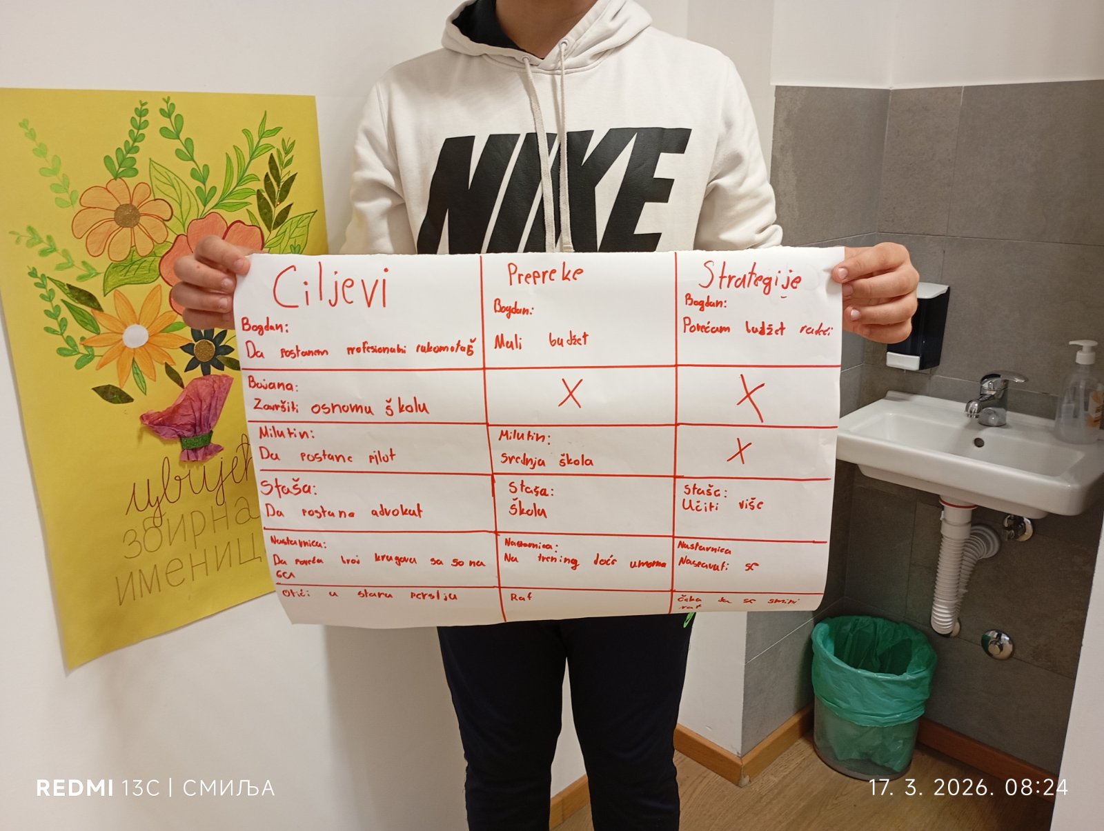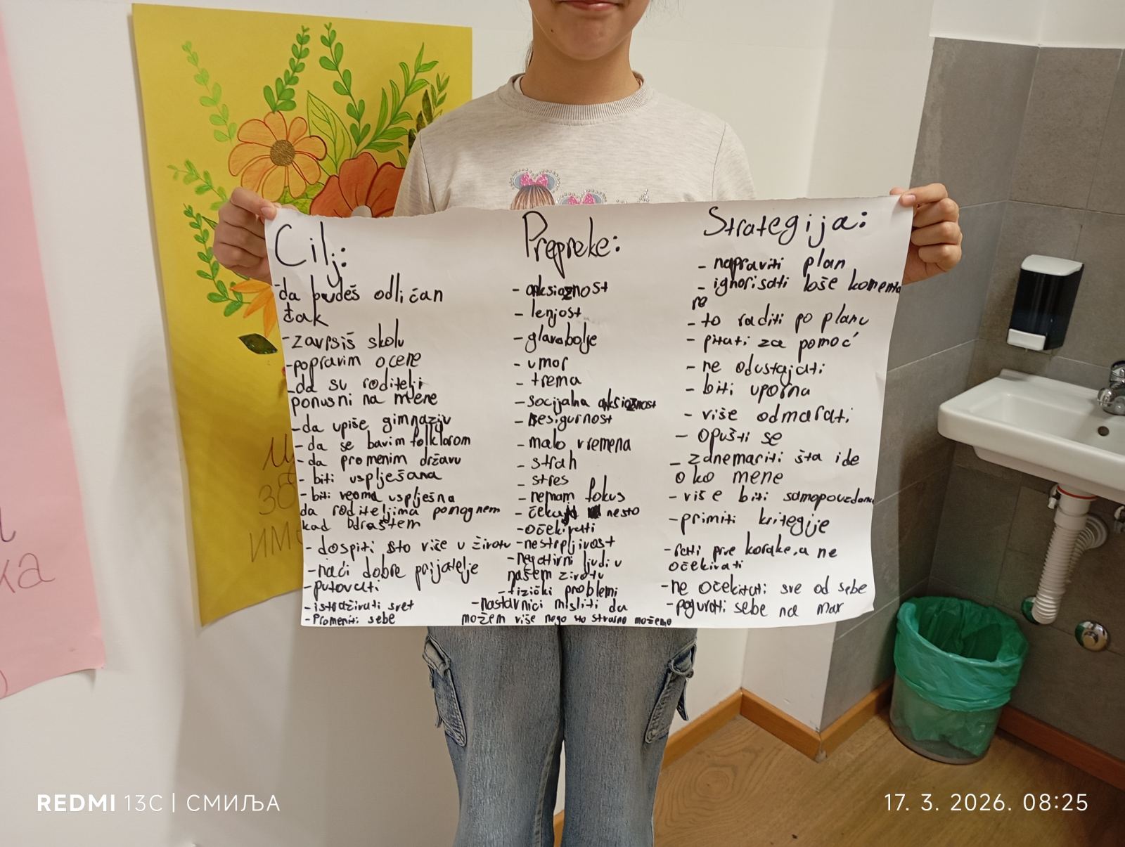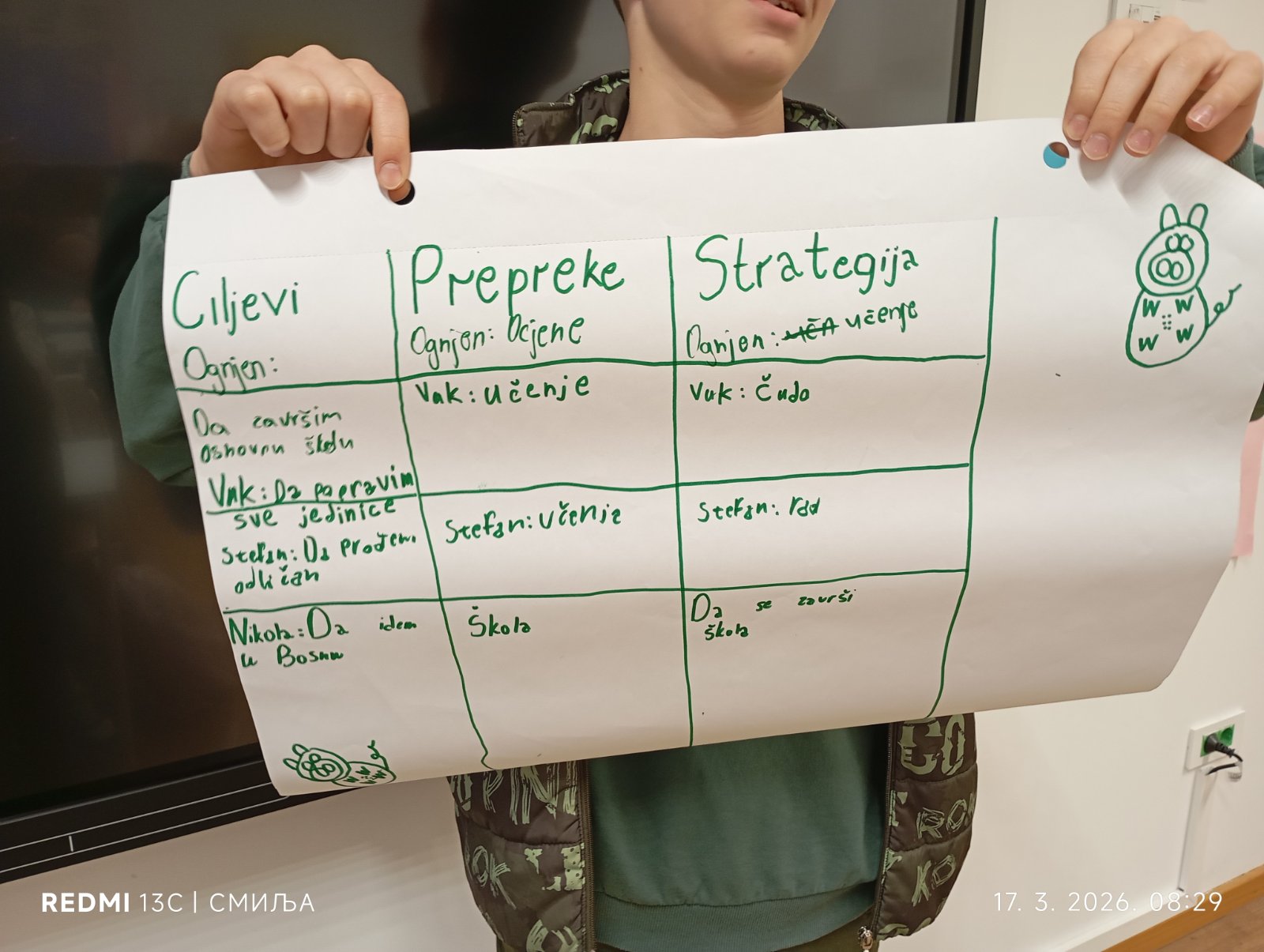 И овог мартовског 17. дана 2026. год, у 8-1 одјељењу, одржана је радионица о циљевима, препрекама и стратегијама које предузимамо да те циљеве остваримо.