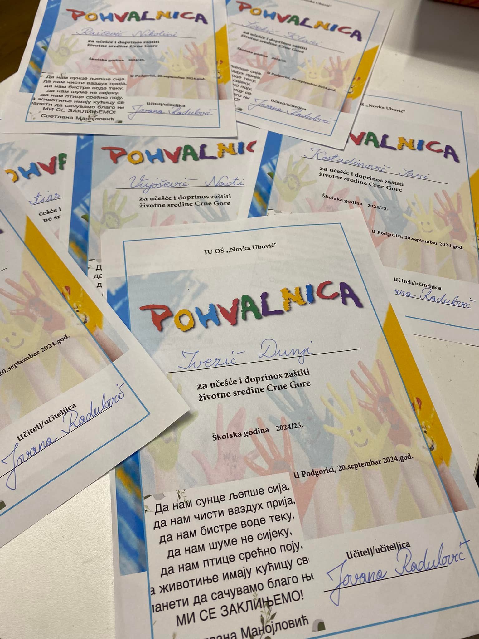Crna Gora obilježava Dan ekološke države, pa su učenici odjeljenja V1 učestvovali u akciji čišćenja školskog dvorišta i okoline. Svojim trudom i zalaganjem, zaslužili su pohvalnicu za doprinos očuvanju životne sredine!