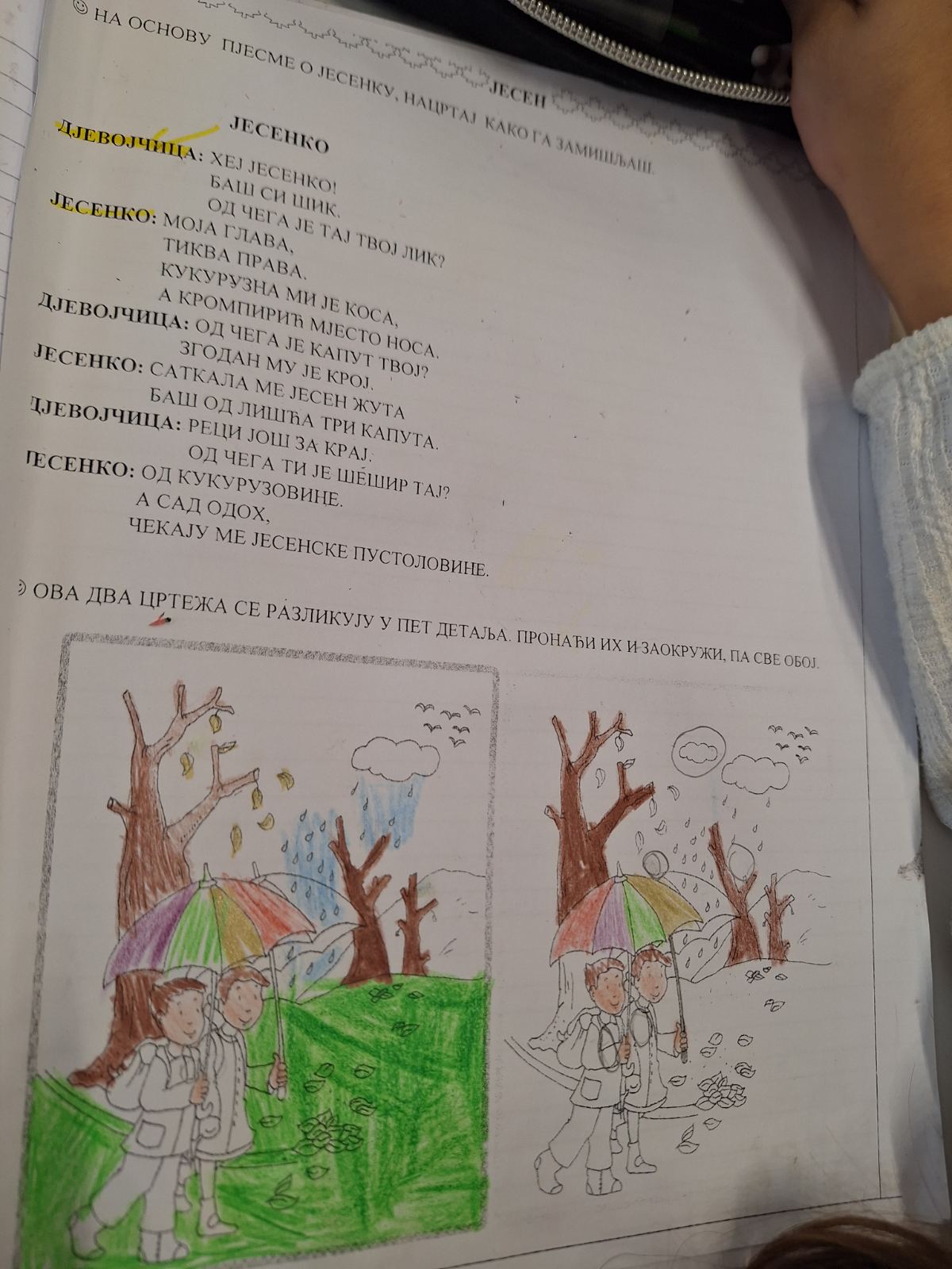 U korelaciji sa Prirodom i društvom, Likovnom i Muzičkom kulturom smo učili, glumili i pravili Jesenka od lišća.