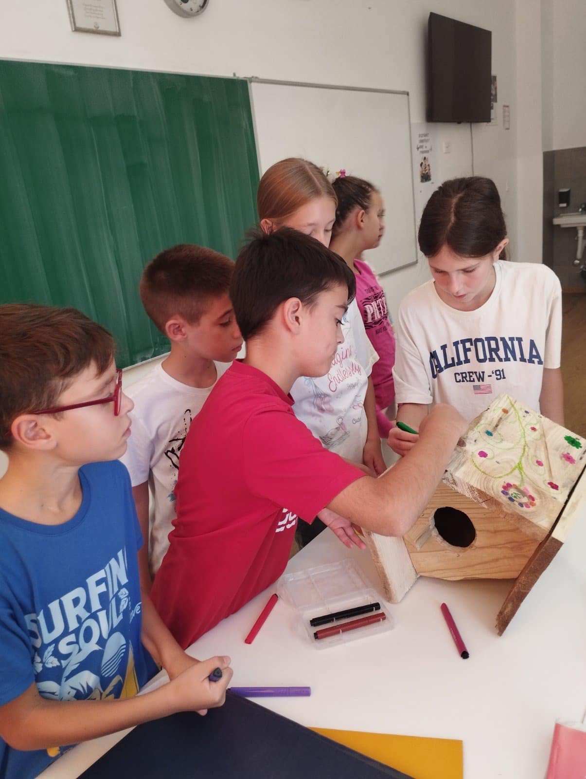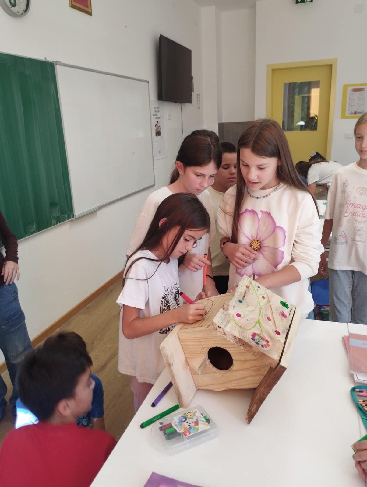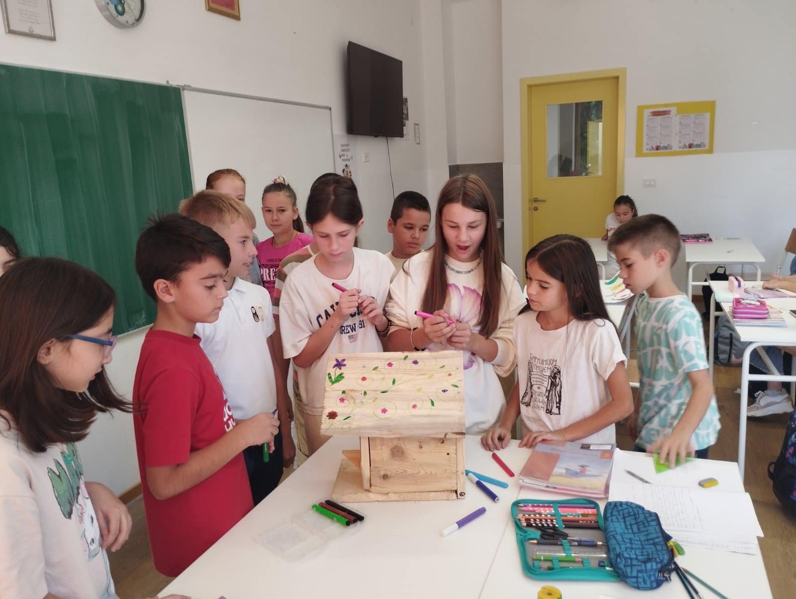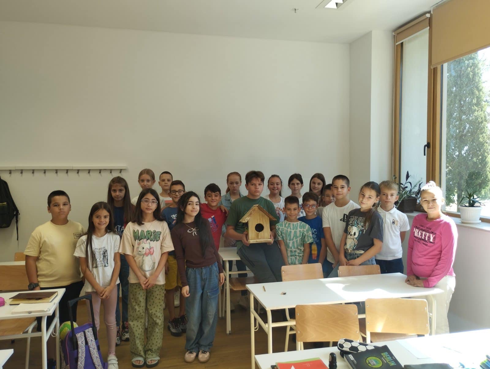 Zajedničkim trudom napravili su i ukrasili prelijepu kućicu za ptice koja sada krasi dvorište naše škole. Ova inicijativa ne samo da doprinosi ljepoti našeg školskog okruženja, već i pruža siguran dom za naše pernate prijatelje.