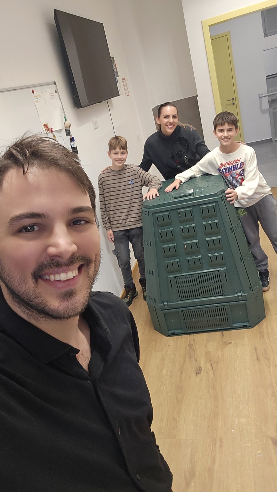 Kao dar nam je donio veliki komposter. Nadamo se da ćemo ga brzo napuniti i dobiti đubrivo za predstojeću sadnju.