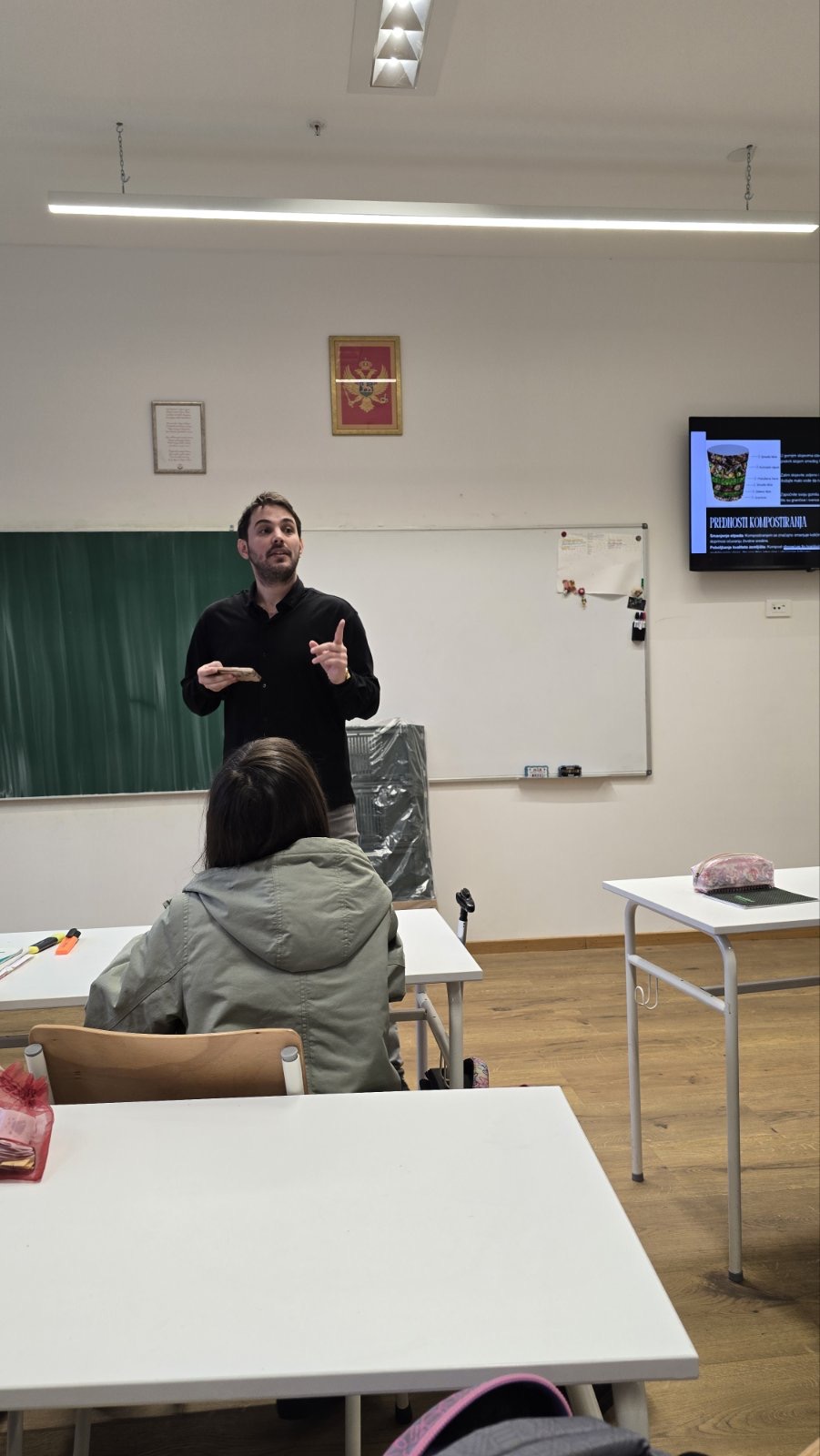 Kako bi sve pripreme protekle valjano NVO ,,Zeleni pravac – Green direction” pomaže nam da naučimo još bolje da kompostiramo, zahvaljujući predavaču Vojislavu Iliću, koji nam je otkrio na koji način da napravimo kvalitetan kompost i proširio naše dosadašnje znanje.