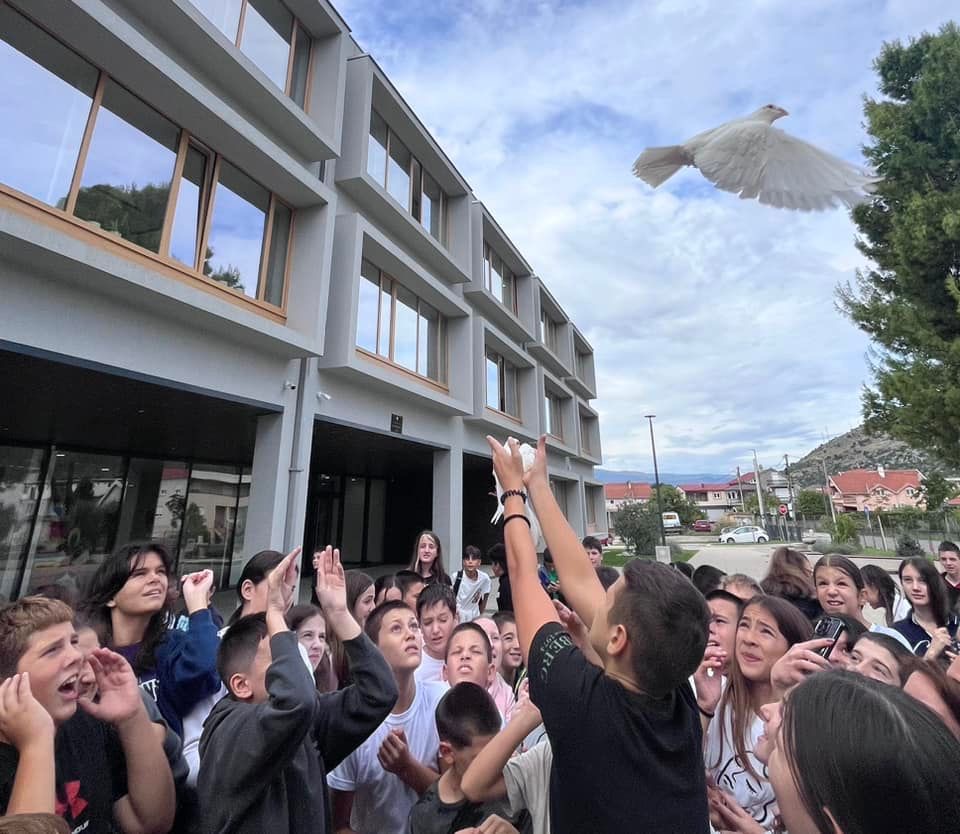S nadahnućem i inspiracijom, učenici naše škole, pisali su svoje želje svijetu i preko bijelih golubova šaljemo snažnu poruku svima: ljubav, ujedinjenje i sloga su imperativi za bolji, mirniji i srećniji život svih nas. Samo kroz zajednički trud možemo stvoriti mjesto u kojem vladaju mir i poštovanje. ️❤️