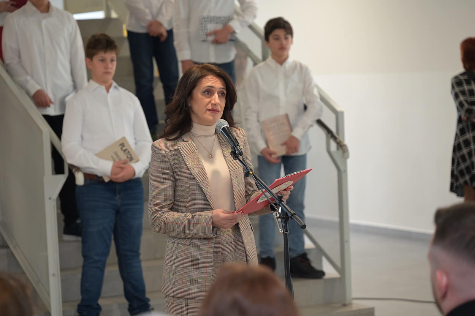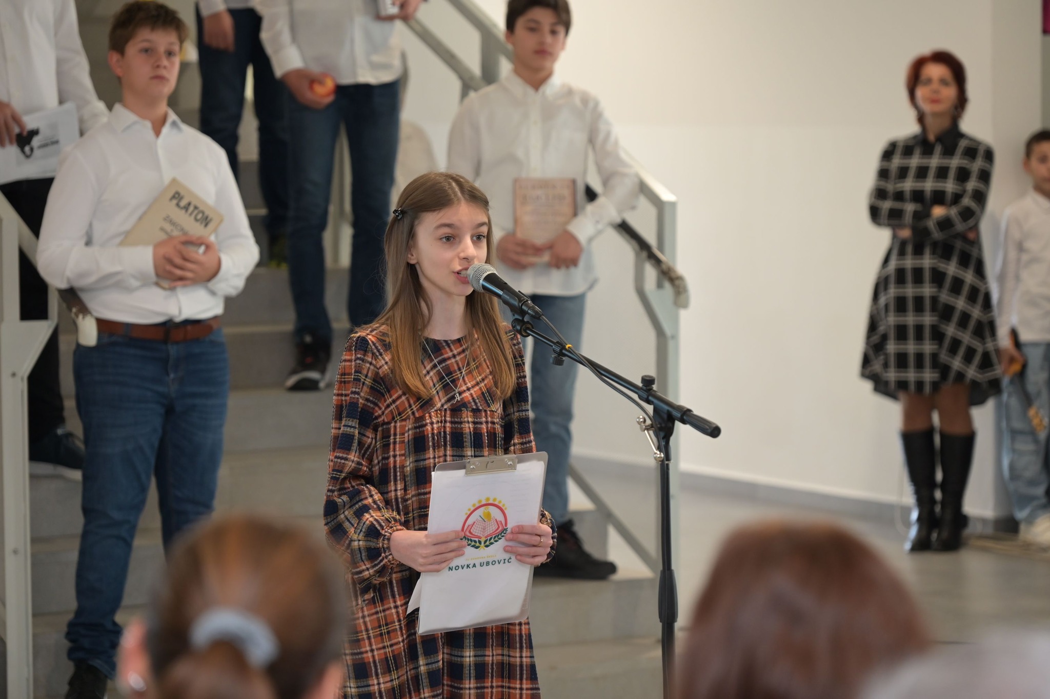 Naša učenica, Anna Ivanišević, svoj voditeljski zadatak riješila je potpuno i do kraja. Redove koje je sa nastavnikom pisala nizala je kao da ovaj posao radi već godinama.