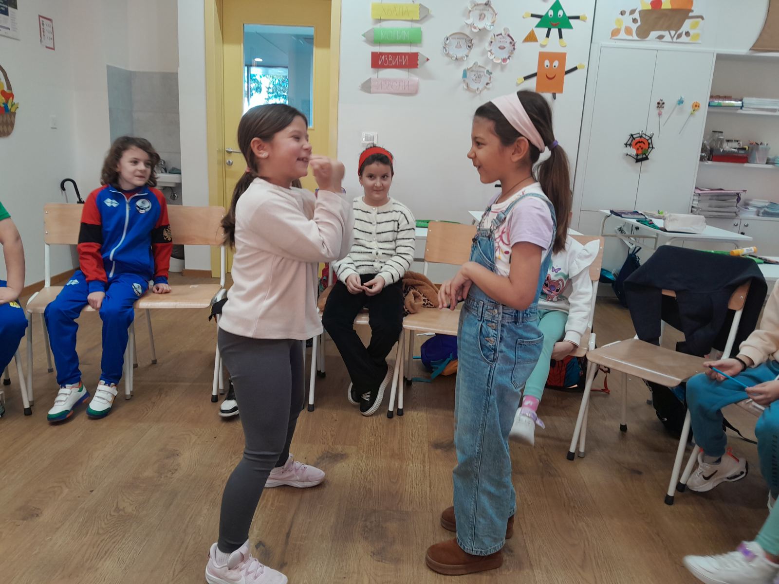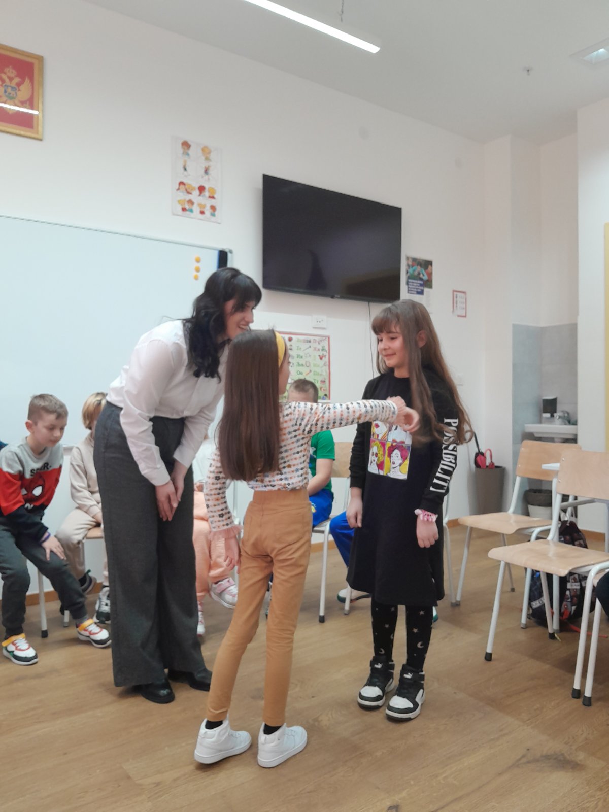 Kroz aktivnost u parovima, učenici su učili kako je ponekad dovoljno malo da bismo bili nasmijani i veseli. Učili su i da svi imamo nešto posebno u sebi – svako je dobar u nečemu i potrebno je malo strpljenja da to otkrijemo.