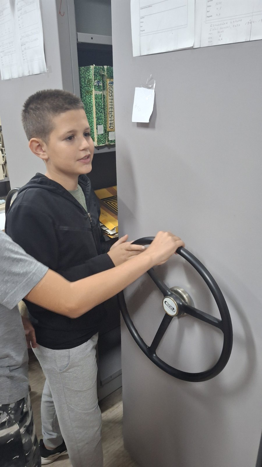 Ljubazni domaćini iz arhiva sproveli su nas kroz arhivske prostorije uključujući i depo – posebno zaštićen prostor u kome se čuvaju vrijedna istorijska dokumenta. Posebno interesovanje izazvao je originalni školski dnevnik iz 1907. godine.