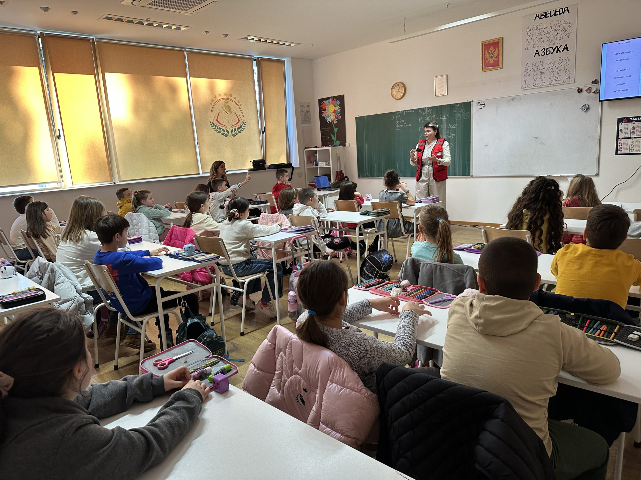 Učenici odjeljenja III-3 i njihova učiteljica Jelena Saveljić ugostili su predstavnicu Crvenog krsta, Terezu Vujošević. Gošća im je govorila o upotrebi znaka Crvenog krsta, istorijatu ali i najvažnijem – o humanosti koja leži u svima nama.
