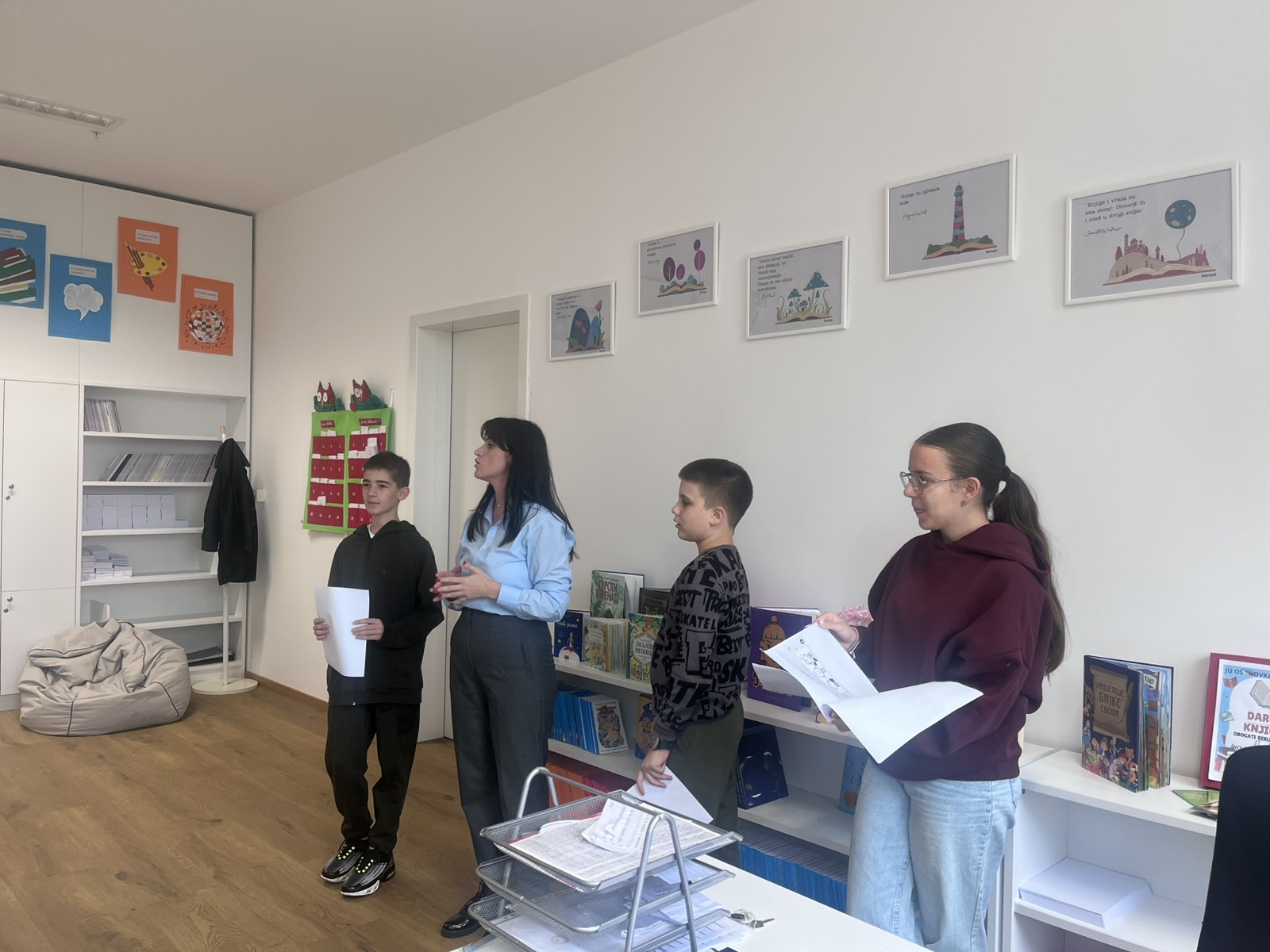 Učenicima su podijeljeni informacioni flajeri i svi zajedno su pogledali kratak prilog o medijaciji.