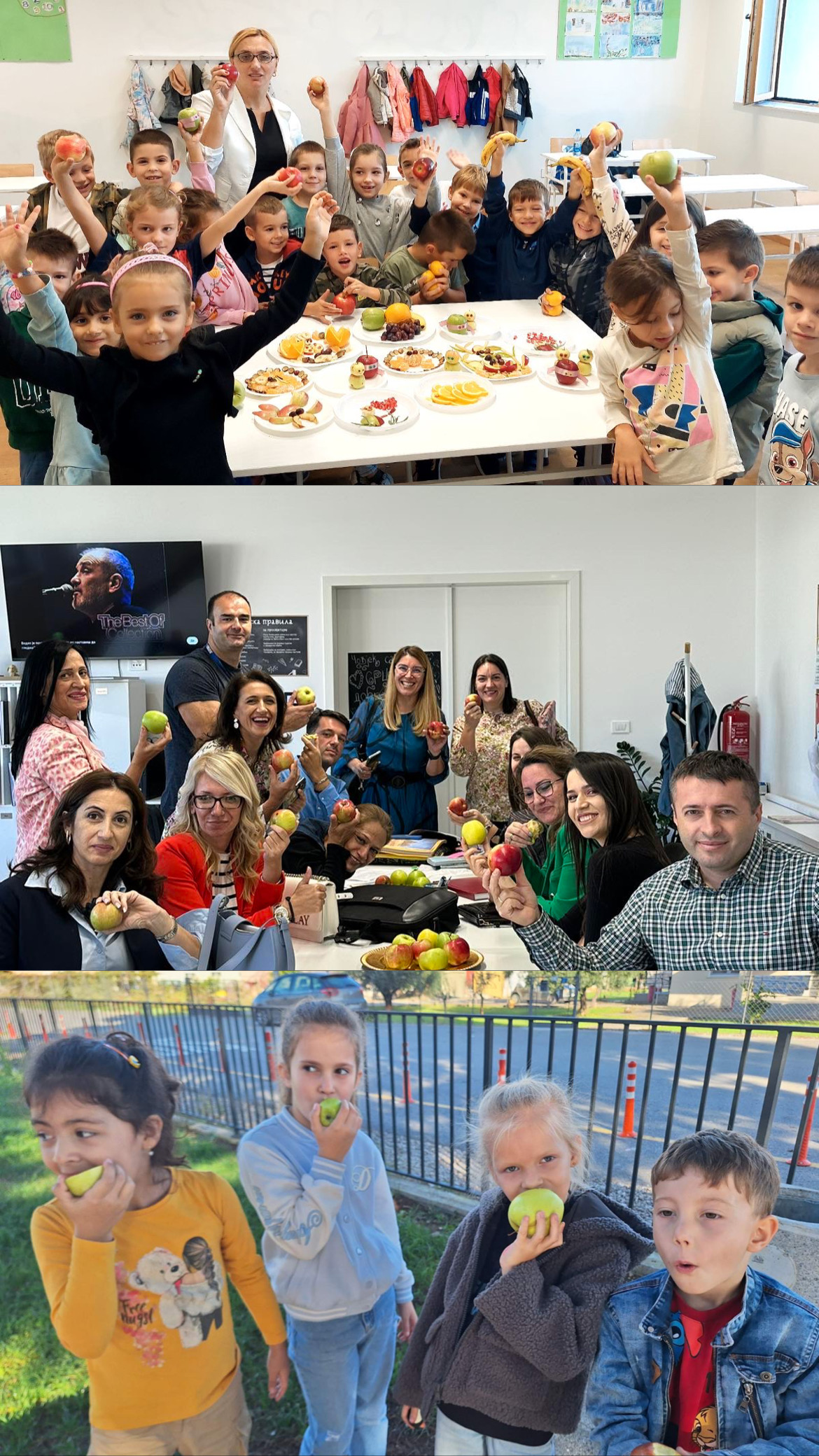 Akciji su se radosno odazvali i nastavnici/e, kao i Uprava škole, a neki od njih su za kolege i učenike/ce donijeli jabuke iz svoje bašte! ☺️