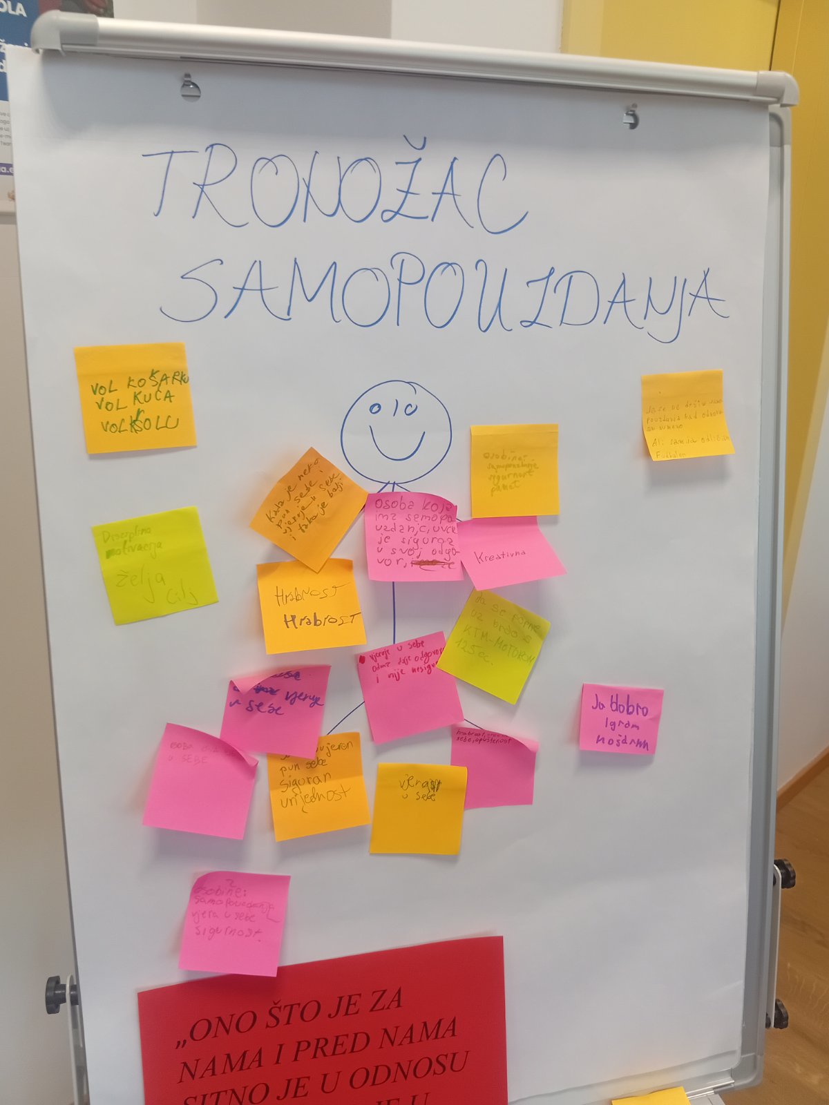 Učenici su kroz kreativne aktivnosti istakli svoje pozitivne osobine, podsjećajući se na to koliko su posebni. Taj prvi korak – prepoznavanje svojih snaga bio je temelj za dalji rad na izgradnji povjerenja u sebe.