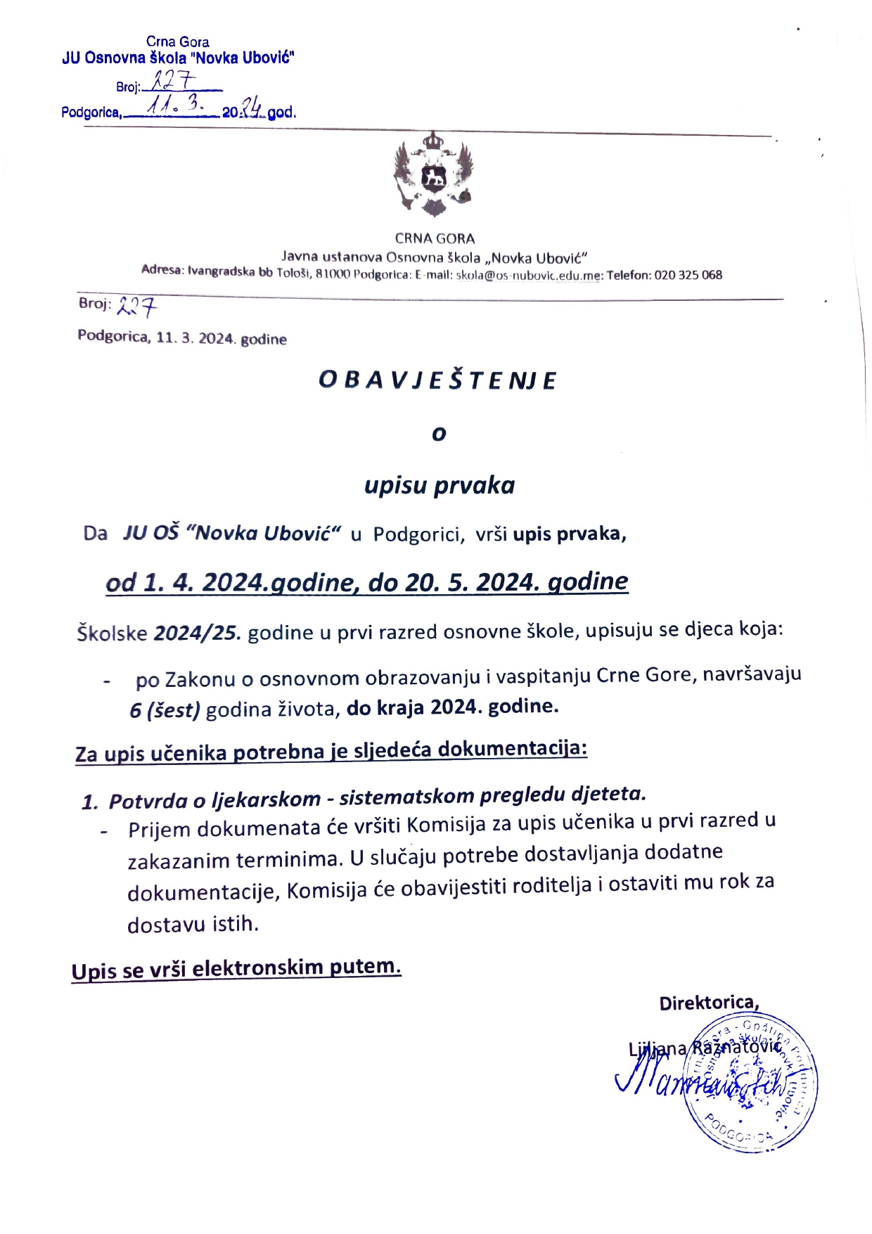 Kliknite OVDJE za elektronski upis