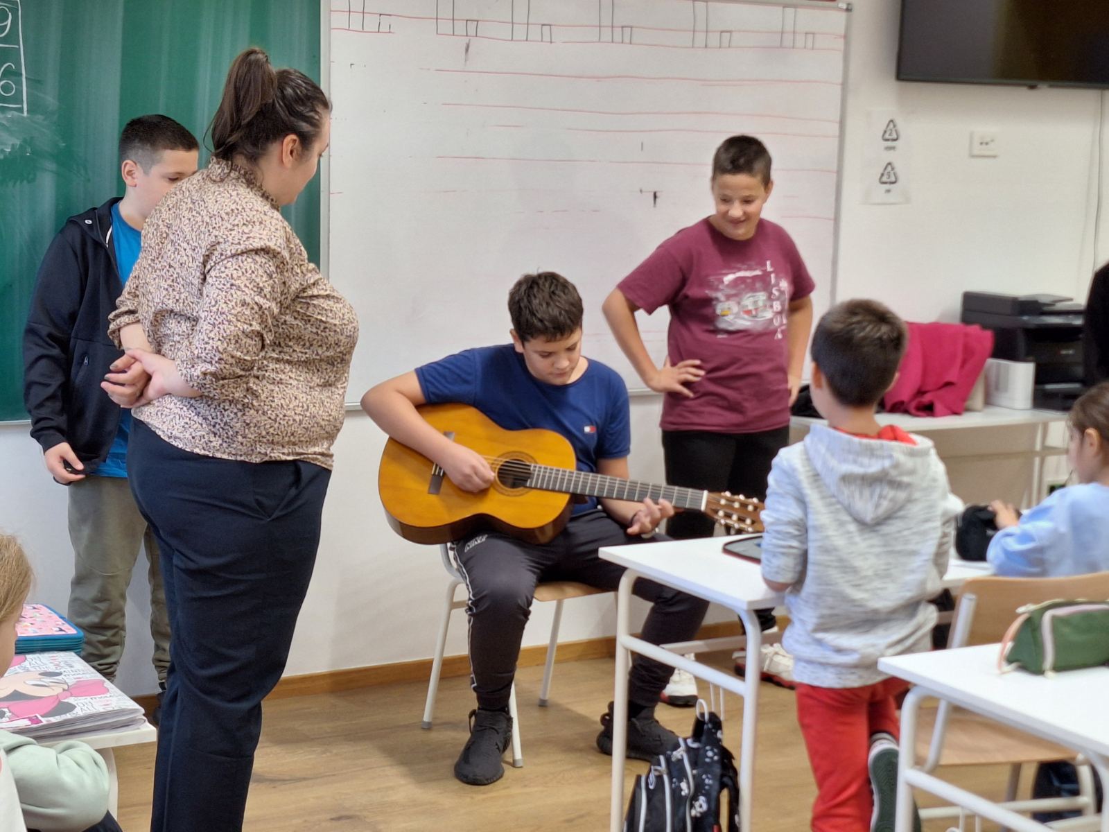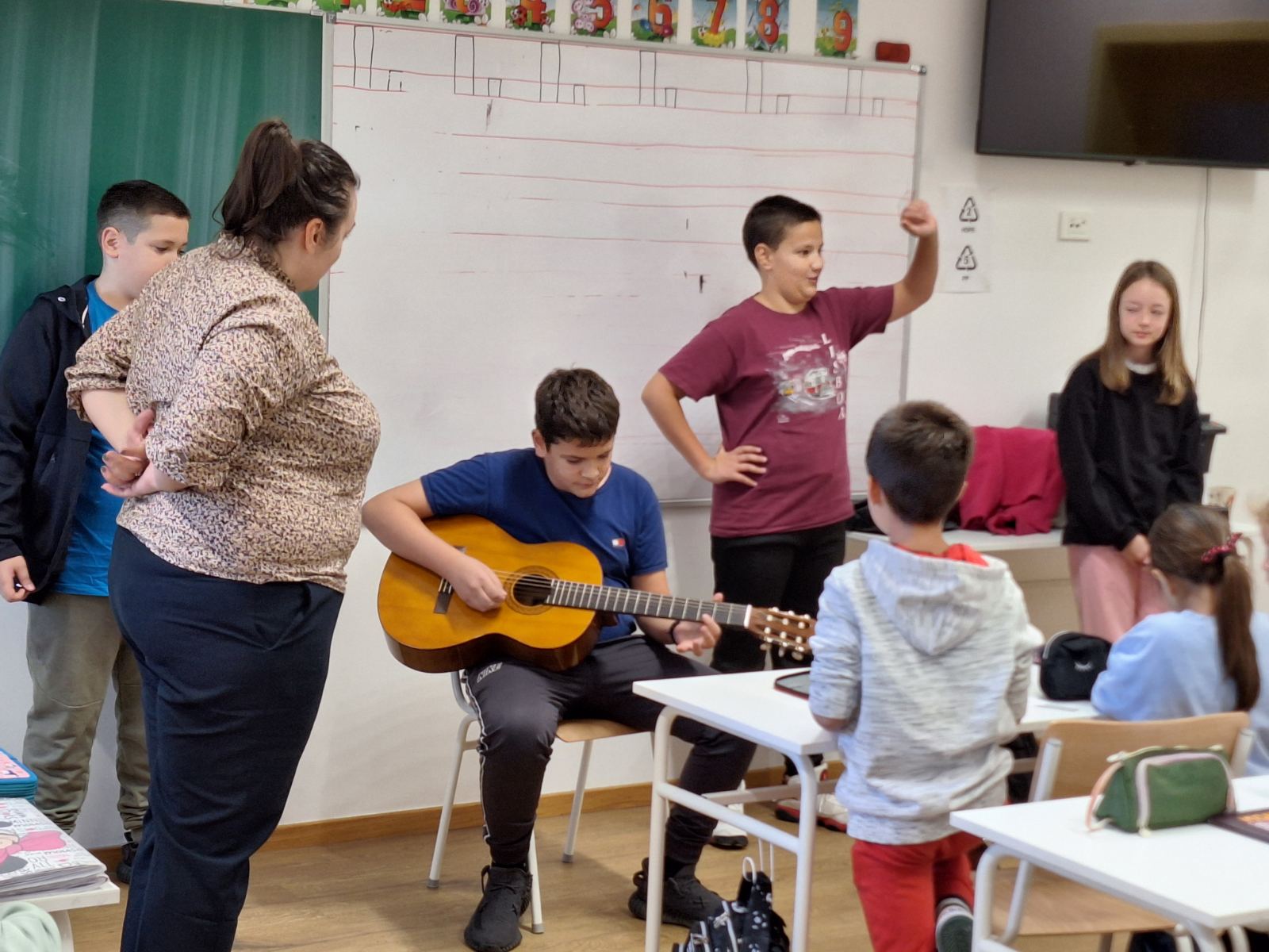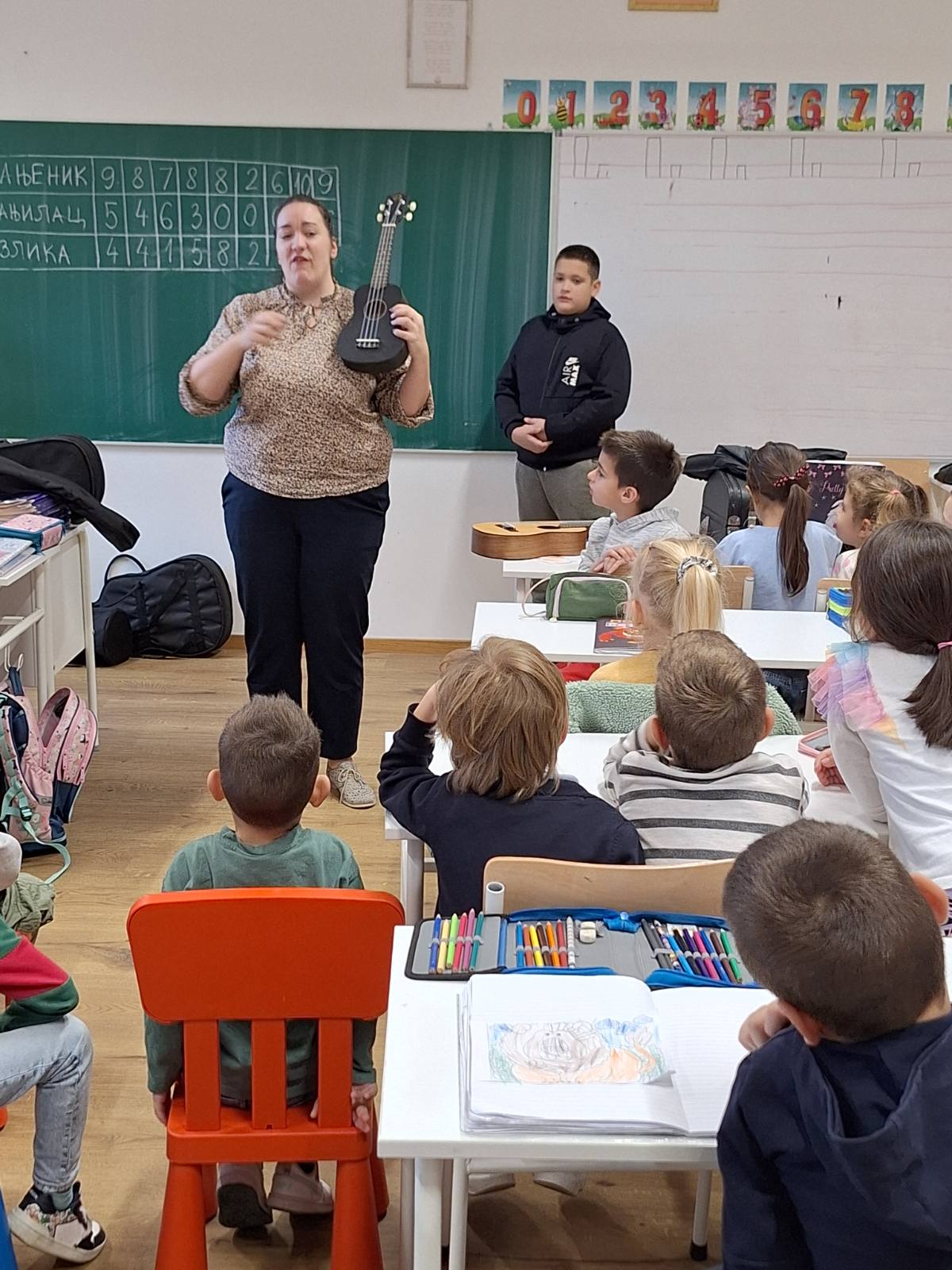 Učenici I-1 i I-2 odjeljenja su dana 8. 11. 2024.g. ugostili nastavnicu Muzičke kulture Milicu Matanović, kao i njene učenike.