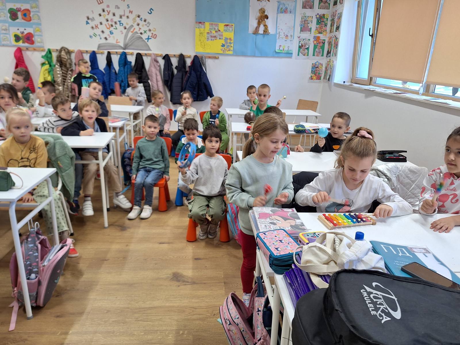 Na kraju časa i sama djeca su svirala i pjevala na Orfovim instrumentima i uživala u čaroliji koju samo muzika može da priušti.
