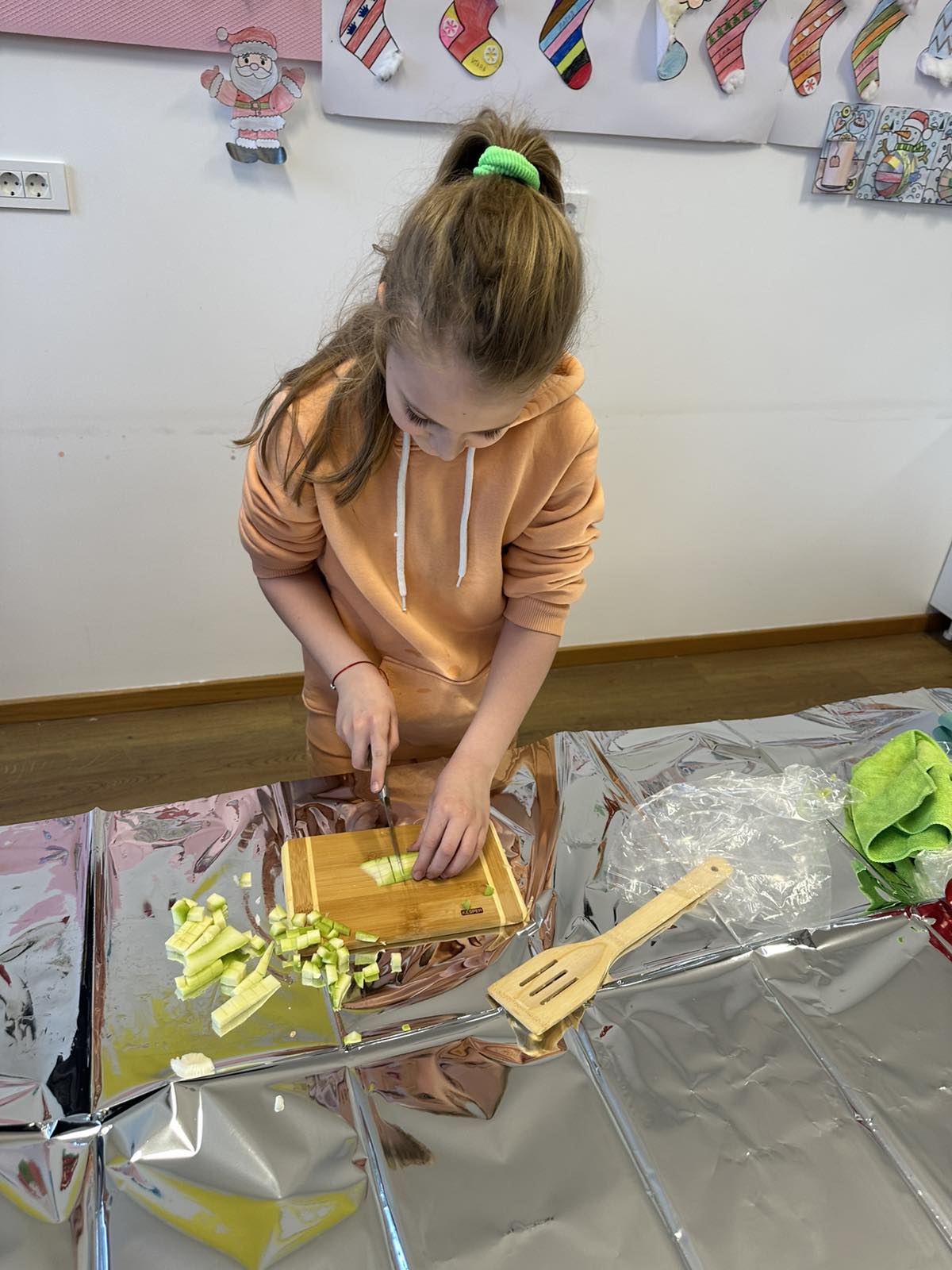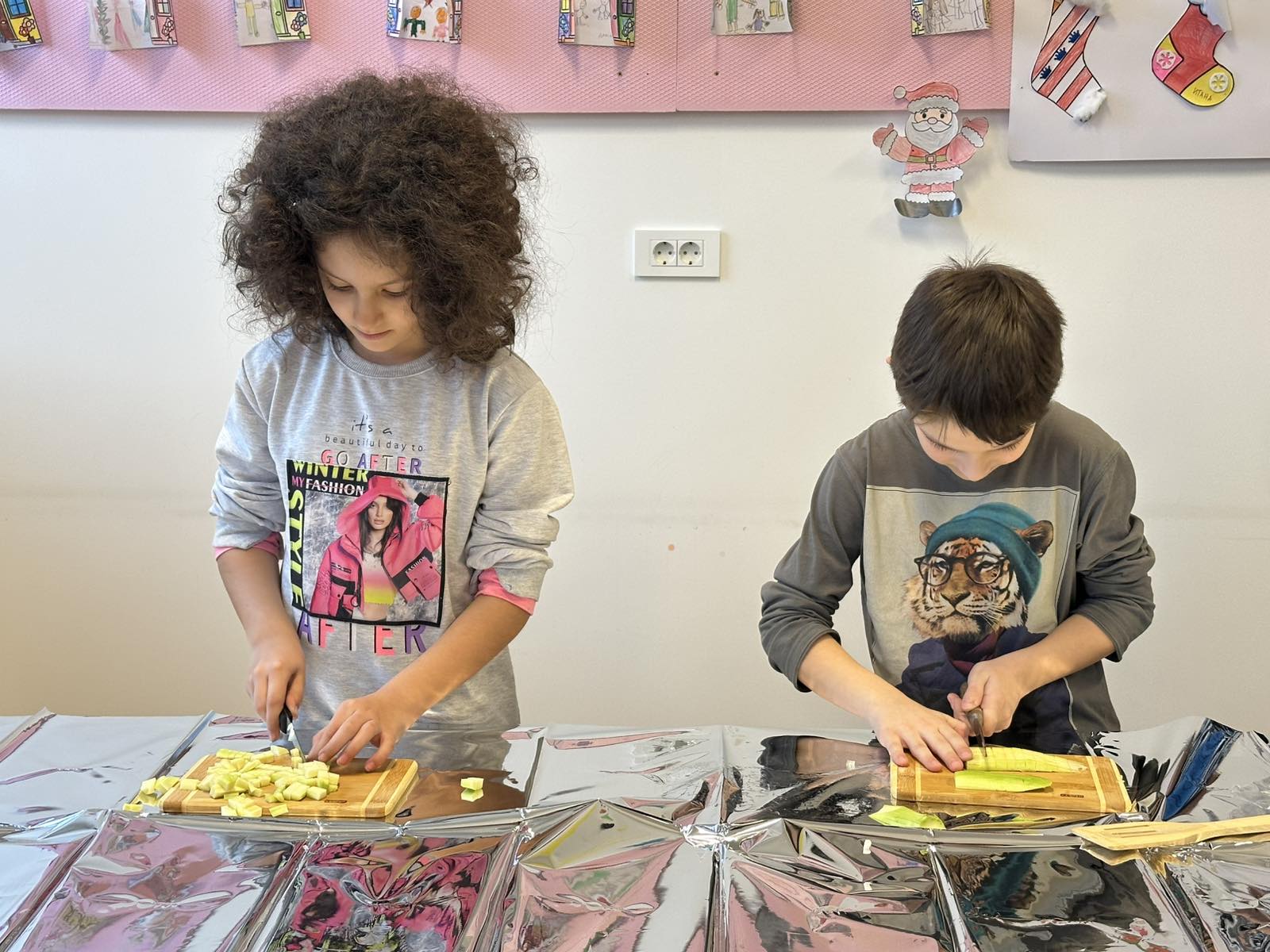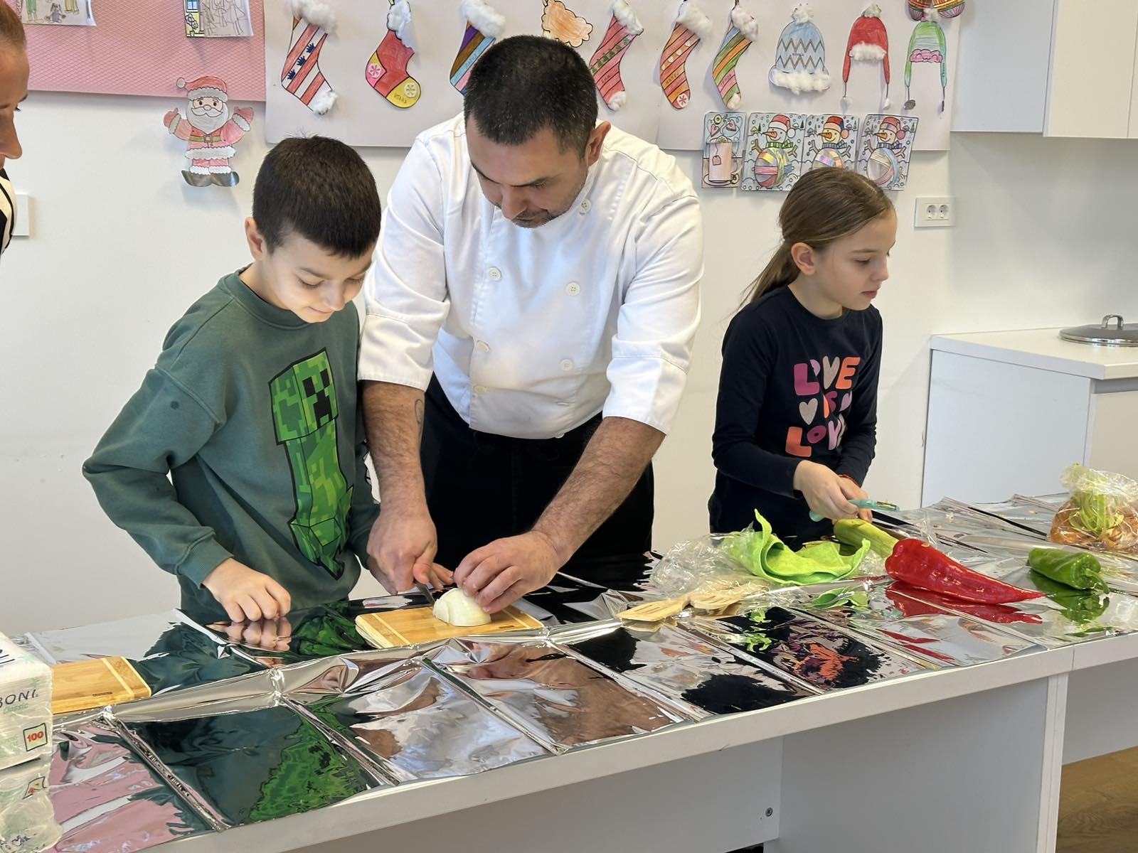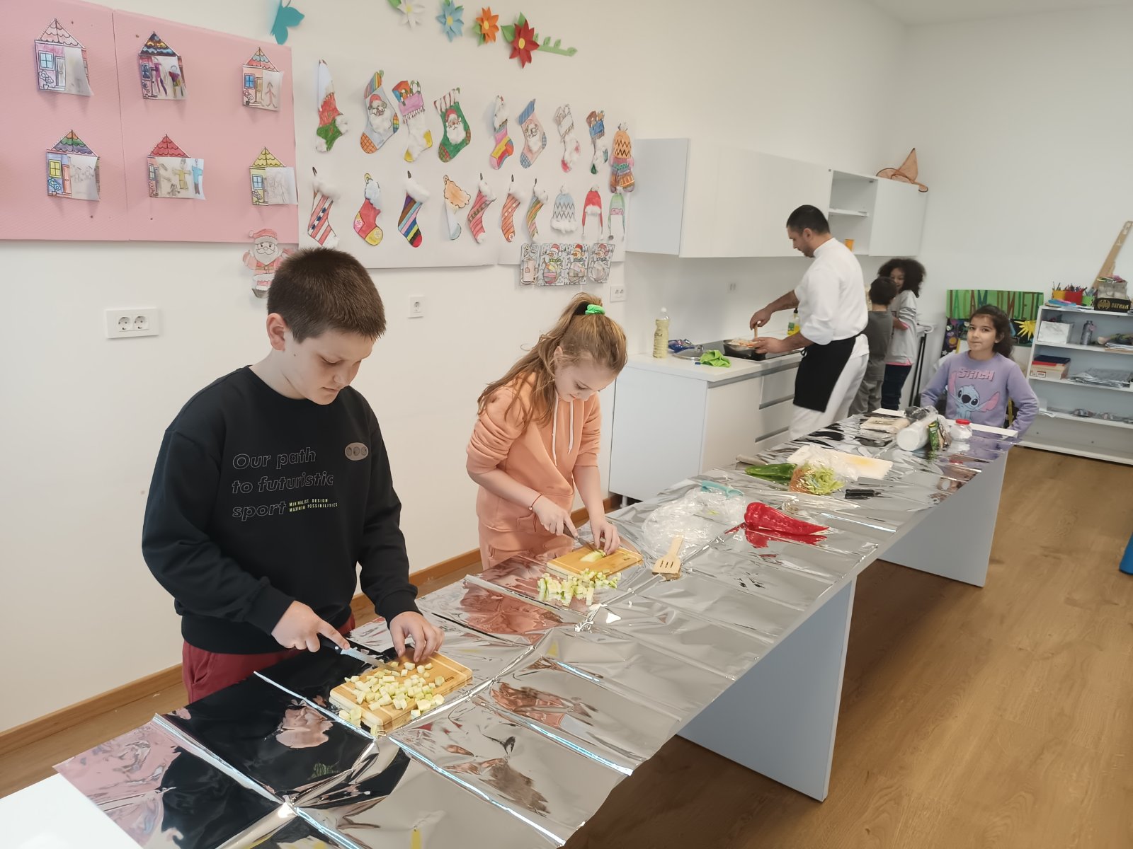 Nijesmo samo pričali. Djeca su bila pomoćni kuvari u našoj kuhinji i uz kontrolu pomagali da se pripremi riža. Gulili su prethodno oprano povrće, sjeckali i nestrpljivo čekali da hrana bude gotova.