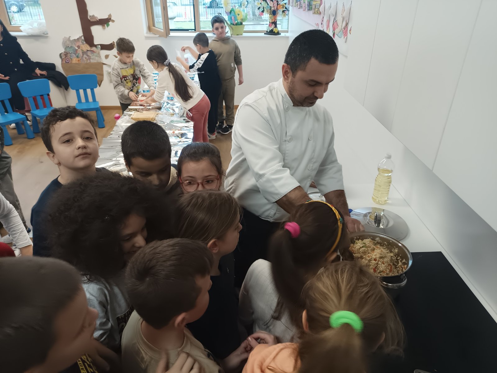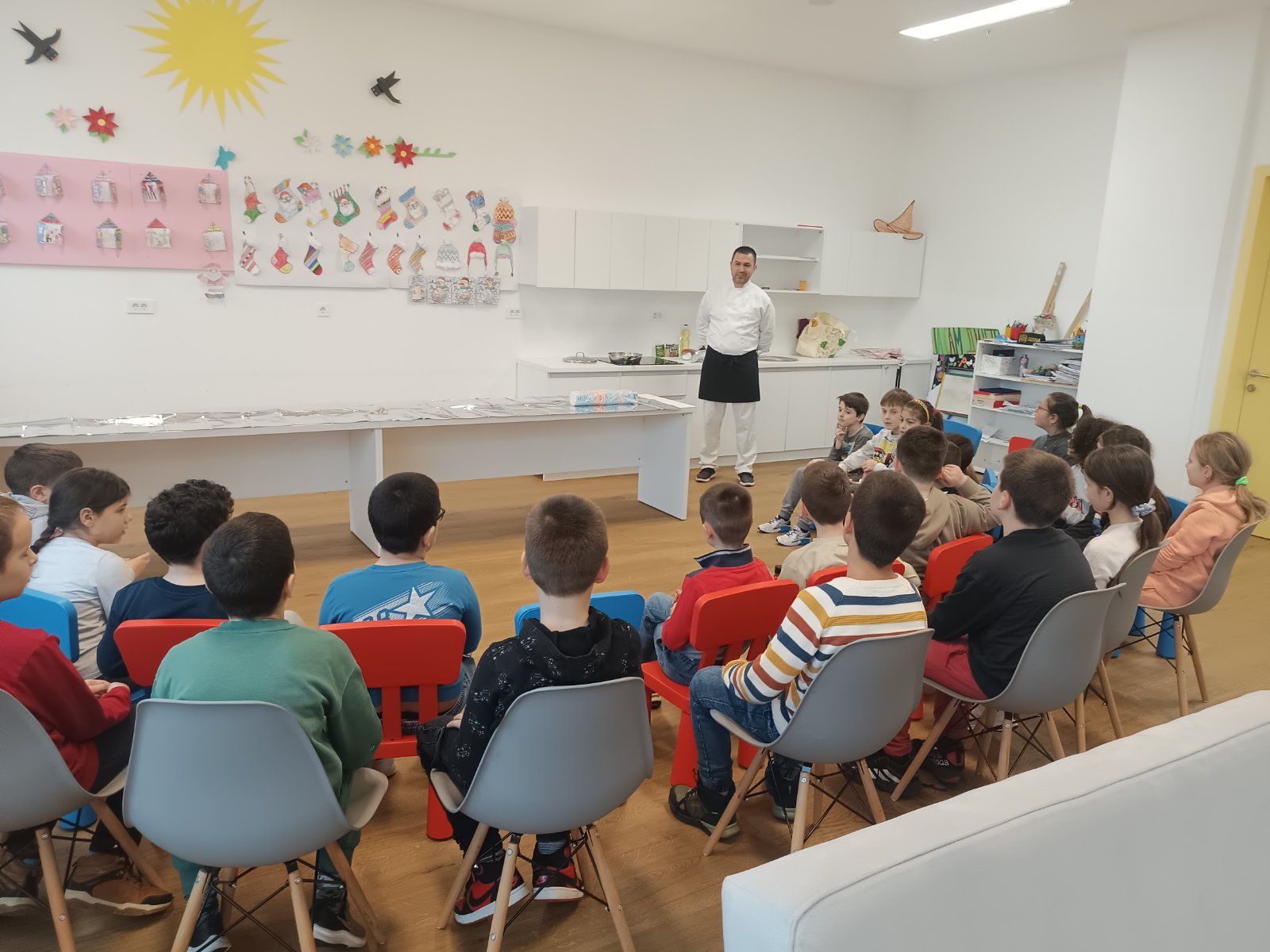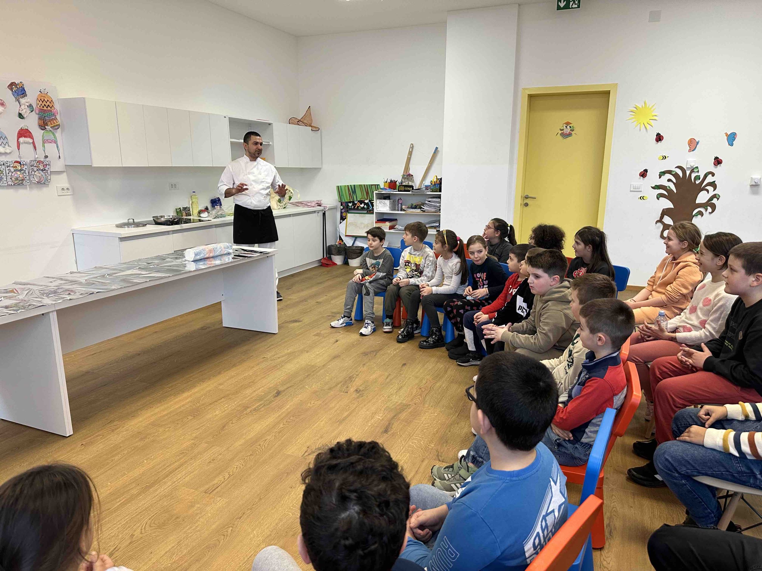 Čas je počeo pričom o ovom vrlo cijenjenom zanimanju. Djeca su kroz razgovor i slobodnu komunikaciju saznali dosta o zdravoj ishrani, navikama u hranjenju, benefitima pojedinih namirnica, značaju konzumiranja voća i povrća, higijeni, začinima koji se dodaju hrani. Djeci je posebno bila zanimljiva priča našeg kuvara da su u davna vremena ljudi umjesto plate dobijali so. Eto toliko je bio cijenjen ovaj nezaobilazan začin.