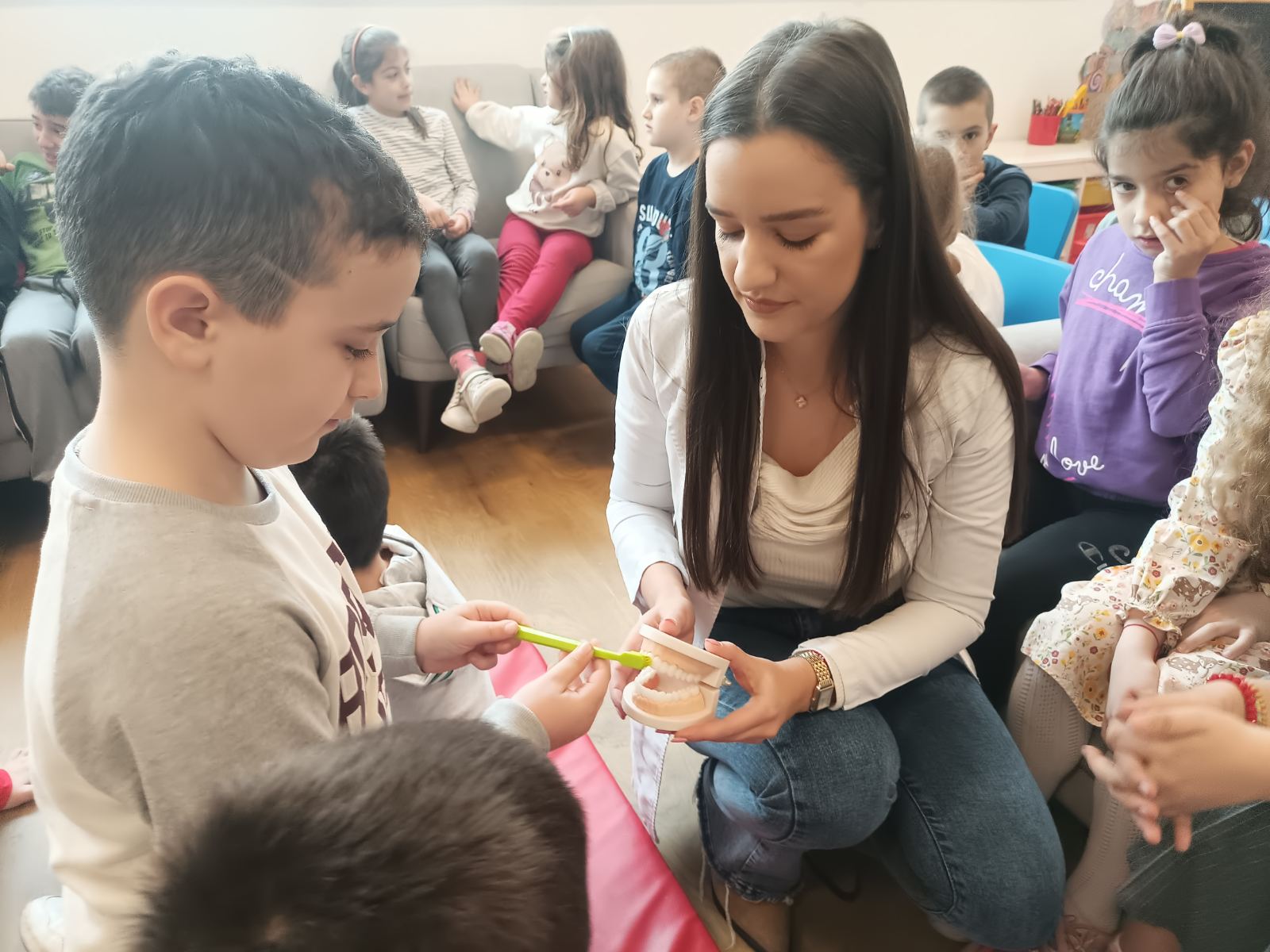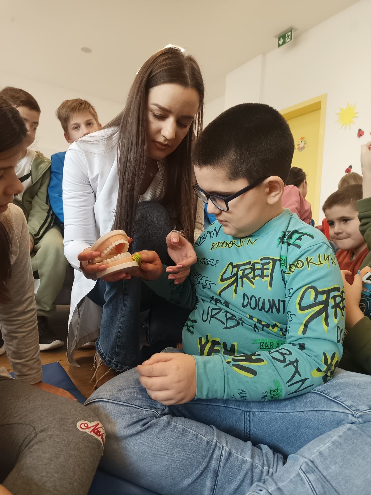 Djecu je oduševio model vilice sa zubima na kojem su samostalno mogli vježbati pravilno pranje zuba. Doktorica je zainteresovala djecu, te su postavljali dodatna pitanja, na koja je strpljivo odgovarala.